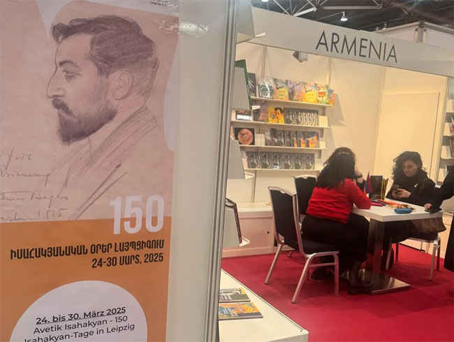 | Մարտի 27-ին Լայպցիգի գրքի ցուցահանդեսում պաշտոնապես բացվել է Հայաստանի ազգային տաղավարը: Ի նշանավորումն Ավետիք Իսահակյանի 150-ամյա հոբելյանի` ցուցահանդեսի ընթացքում տեղի է ունեցել «Աբու-Լալա Մահարի» պոեմի գերմաներեն հրատարակության շնորհանդեսը, որին ներկա է եղել և ողջույնի խոսքով հանդես եկել ՀՀ կրթության, գիտության, մշակույթի և սպորտի նախարարի տեղակալ Ալֆրեդ Քոչարյանը: «Իսահակյանը ոչ միայն հայ գրականության մեծանուն ներկայացուցիչներից է, այլև եվրոպական մշակութային տարածքի հետ կապող յուրահատուկ կամուրջ։ Նրա ստեղծագործություններն արծարծում են ազատության, սիրո, հումանիզմի և համամարդկային արժեքների թեմաները, որոնք շարունակում են արդիական մնալ նաև այսօր»,- իր խոսքում նշել է պարոն Քոչարյանը։ Ցուցադրվել է նաև «Վարպետը» անիմացիոն ֆիլմի գերմաներեն տարբերակը: Մարտի 28-ին տեղի ունեցավ նաև Ավ. Իսահակյանի ստեղծագործությունների գերմաներեն հրատարակության շնորհանդեսը, որը թարգմանել էր Անահիտ Սահակյանը: |
